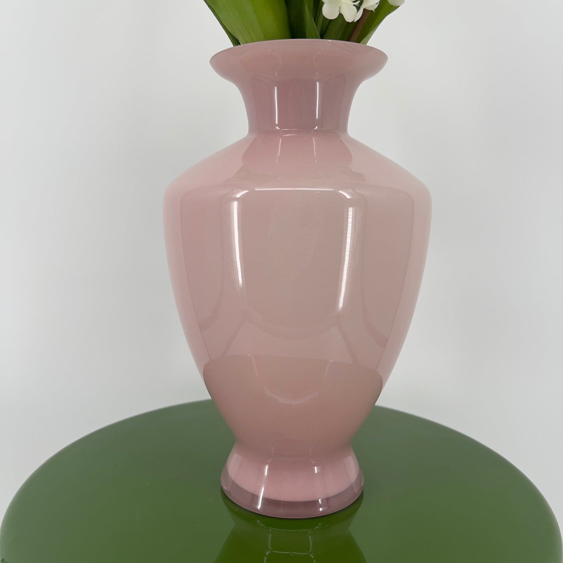 Kunstboeket "Voorjaarsromance" in mondgeblazen glazen vaas/vase Rosy, 24cm